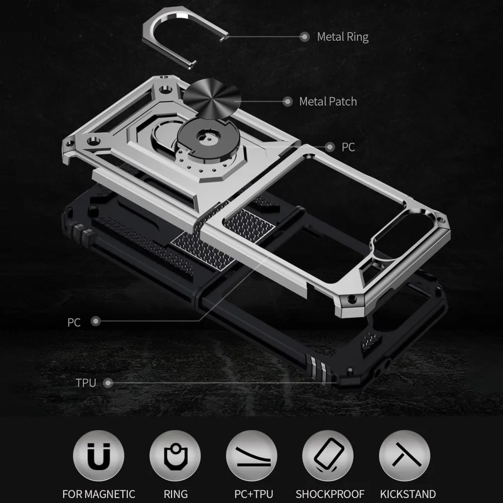 A Ring tartós hibrid tok biztonságot nyújt a telefonodnak minden oldalról és hátulról is, a mozgatható lencsevédő és az enyhén megemelt szélek pedig tökéletes védelmet nyújtanak az érzékeny részeknek. A fém rész lehetővé teszi a mágneses autós tartók használatát.
