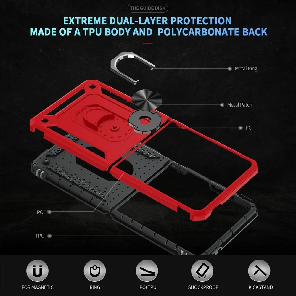 A Ring tartós hibrid tok biztonságot nyújt a telefonodnak a teljes kerület mentén, hátulról pedig a mozgatható lencsevédő és az enyhén megemelt szélek tökéletes védelmet nyújtanak az érzékeny részeknek. A fém rész lehetővé teszi a mágneses autós tartók használatát.