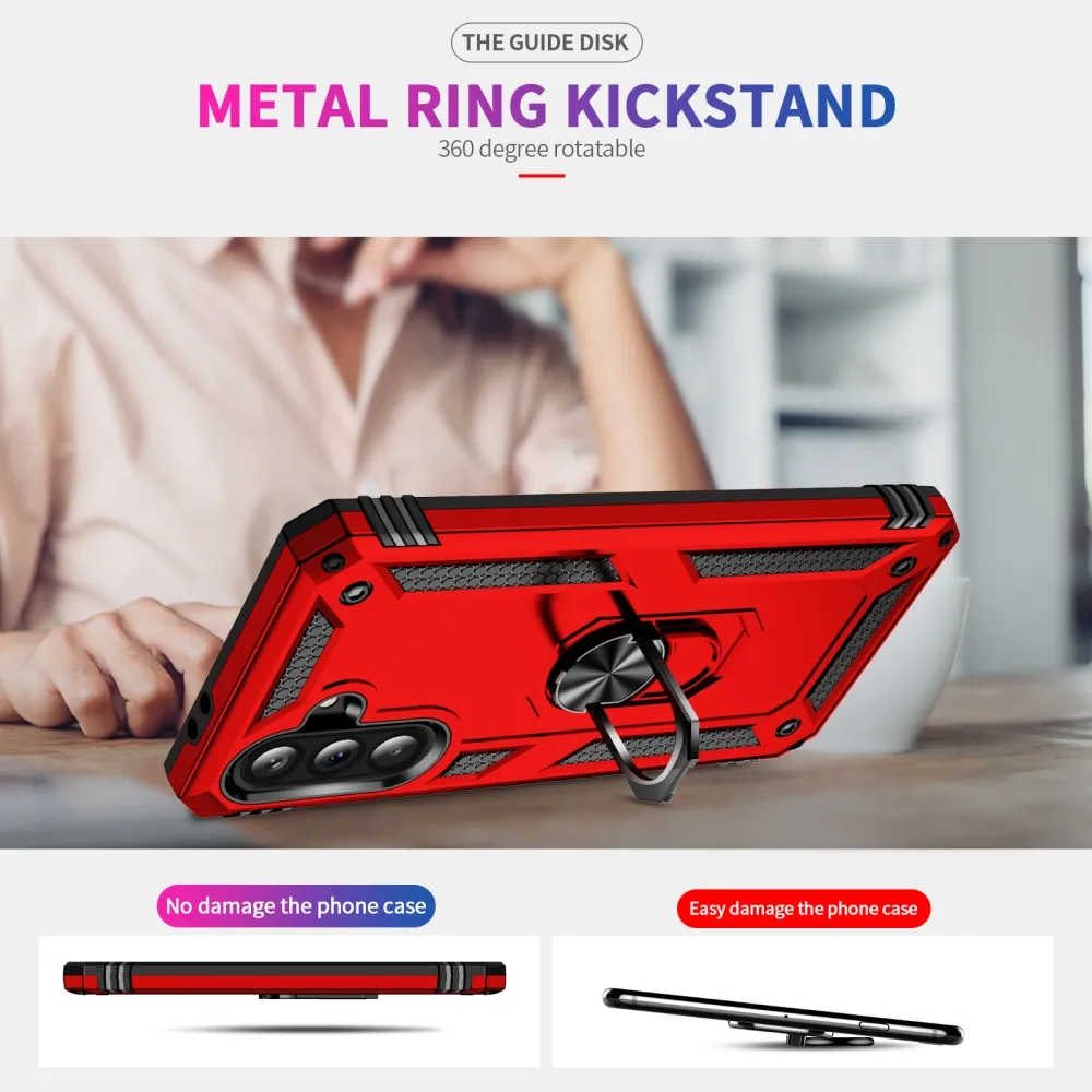Gyűrűálló hibrid borítás ujjbeggyel Samsung Galaxy A37 5G - piros