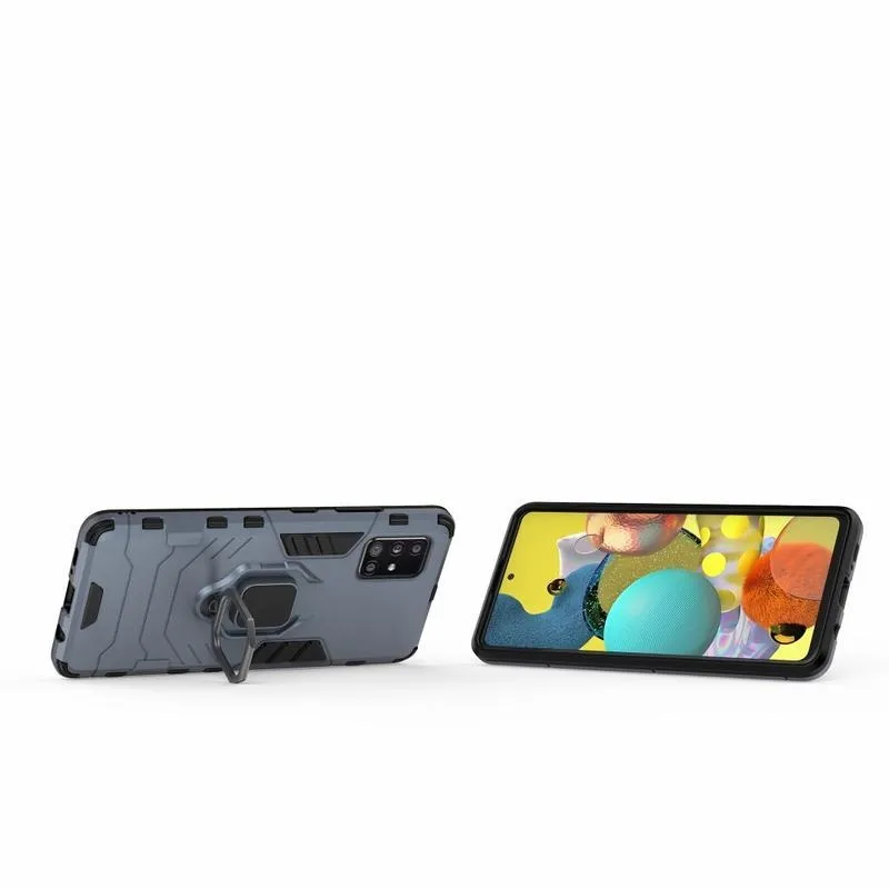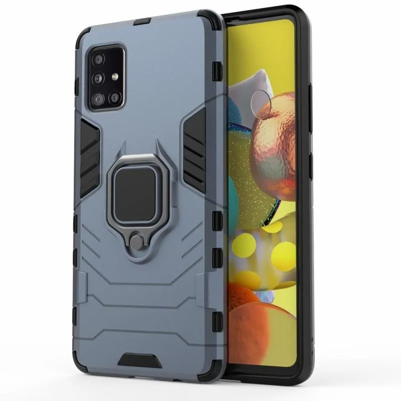 Gyűrűálló hibrid borítás ujjbeggyel Samsung Galaxy A51 5G készülékhez - kék