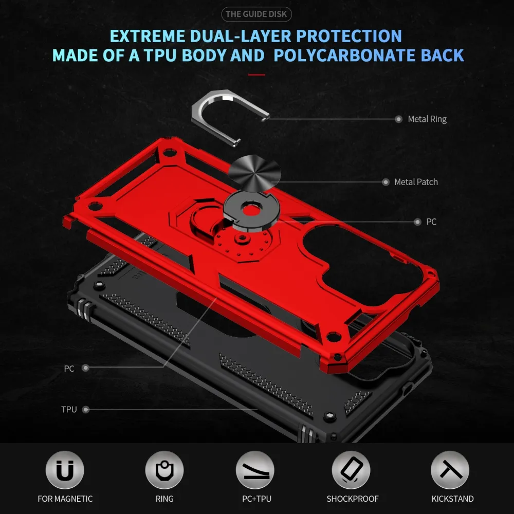 A Ring tartós hibrid tok biztonságot nyújt a telefonodnak minden oldalról és hátulról is, a mozgatható lencsevédő és az enyhén megemelt szélek pedig tökéletes védelmet nyújtanak az érzékeny részeknek. A fém rész lehetővé teszi a mágneses autós tartók használatát.