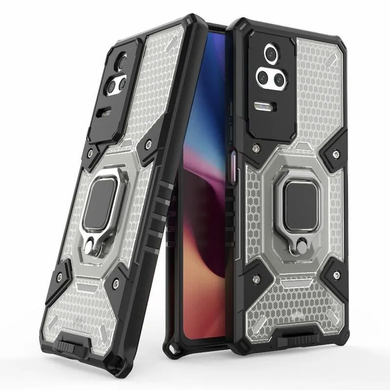 Gyűrűálló hibrid borítás ujjmarkolattal a Xiaomi Poco F4 5G készülékhez - szürke