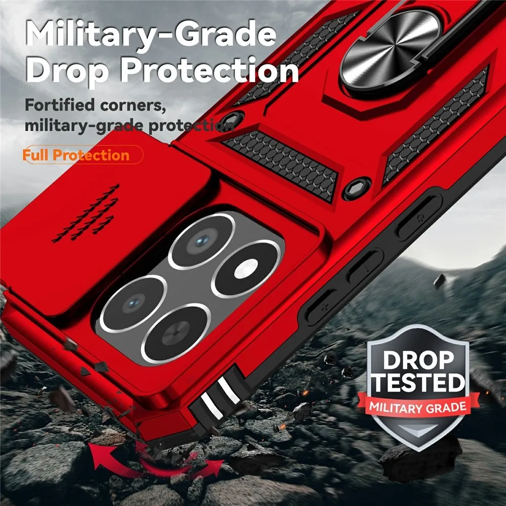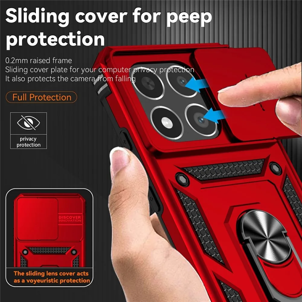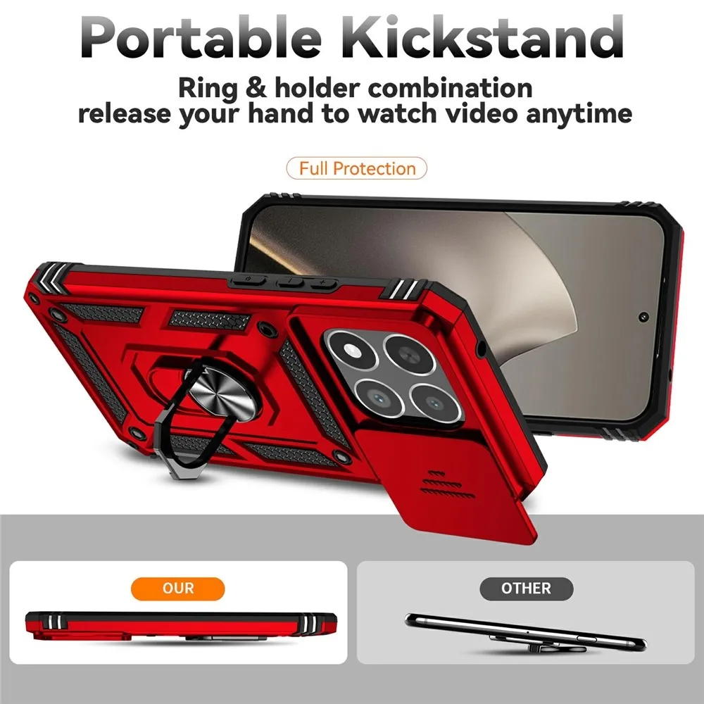 Piros hibrid tartós gyűrűs tok ujjal markolattal Xiaomi 15T számára