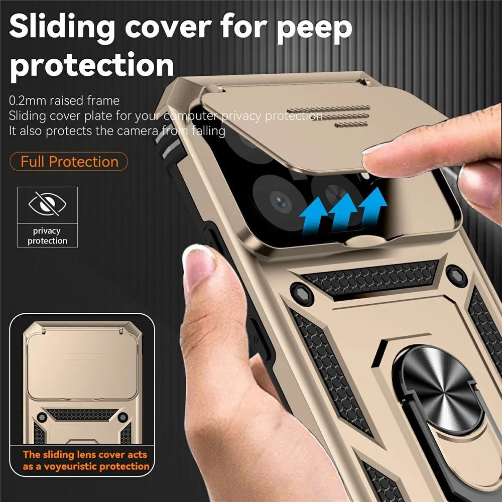 Arany hibrid tartós gyűrűs tok ujjal fogantyúval Xiaomi 15T Pro számára