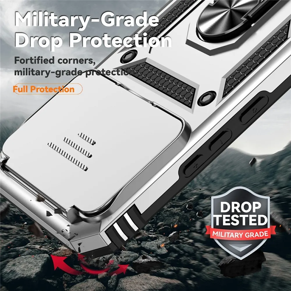 A Ring tartós hibrid tok biztonságot nyújt a telefonodnak minden oldalról és hátulról is, a mozgatható lencsevédő és az enyhén megemelt szélek pedig tökéletes védelmet nyújtanak az érzékeny részeknek. A fém rész lehetővé teszi a mágneses autós tartók használatát.