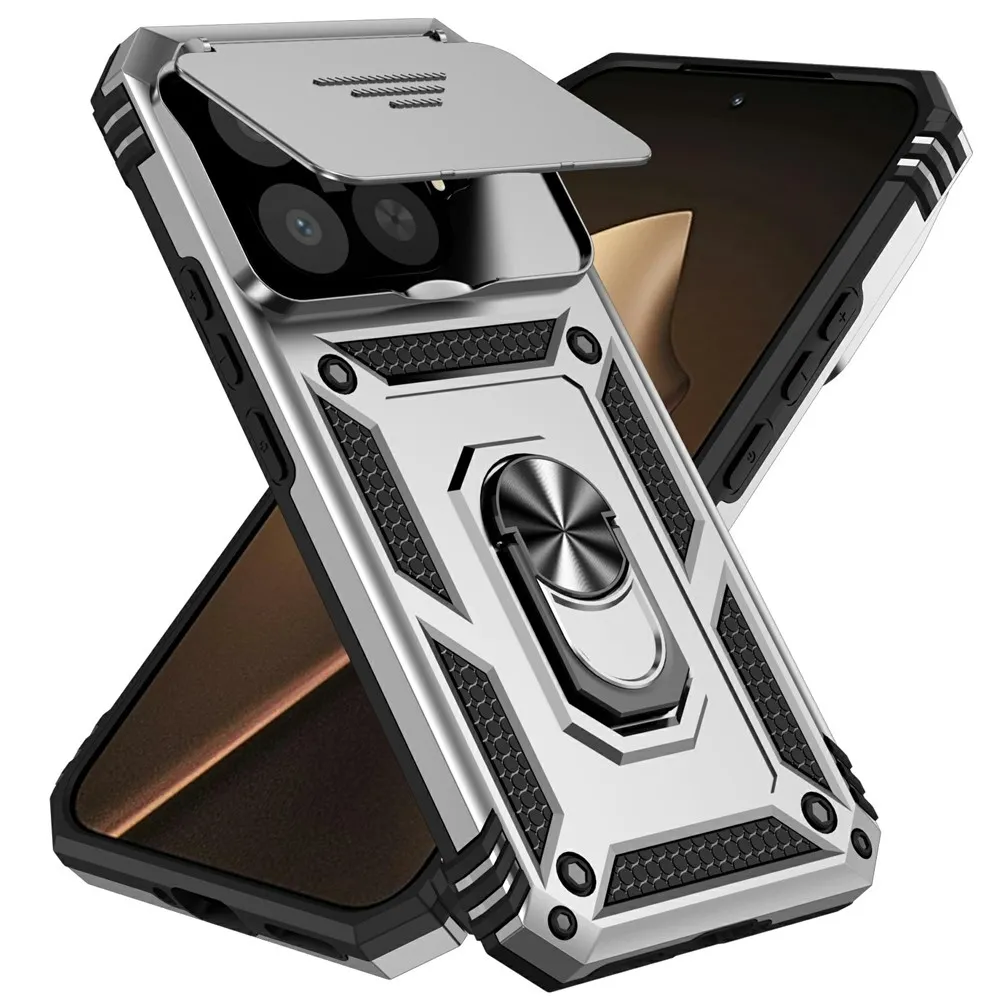 Ezüst hibrid tartós gyűrűs tok ujjal fogantyúval Xiaomi 15T Pro számára