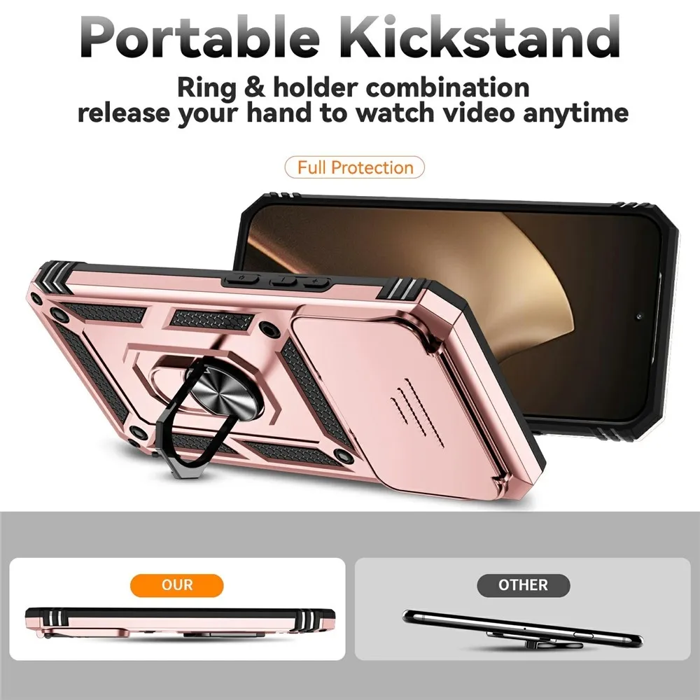 A Ring tartós hibrid tok biztonságot nyújt a telefonodnak minden oldalról és hátulról is, a mozgatható lencsevédő és az enyhén megemelt szélek pedig tökéletes védelmet nyújtanak az érzékeny részeknek. A fém rész lehetővé teszi a mágneses autós tartók használatát.