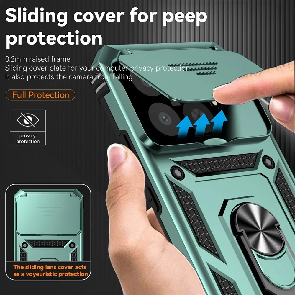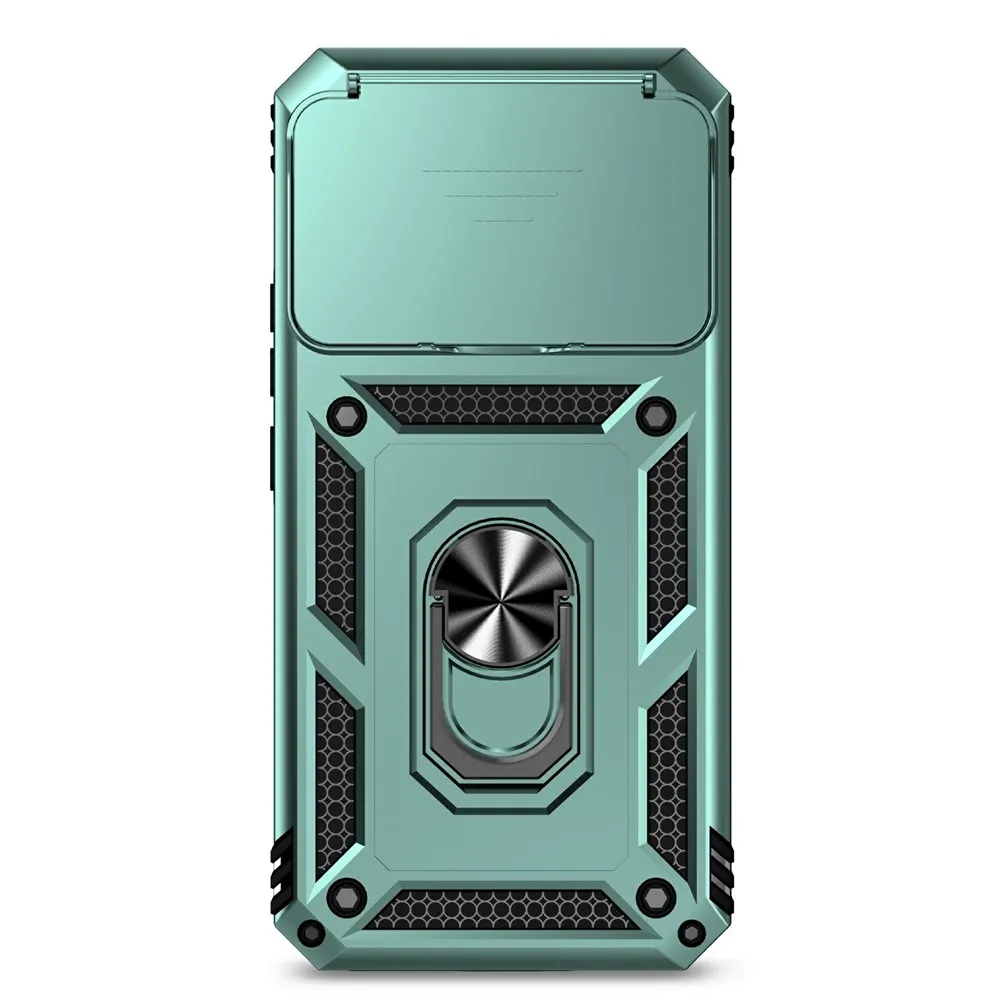 Zöld hibrid tartós gyűrűs tok ujjal fogantyúval Xiaomi 15T Pro számára