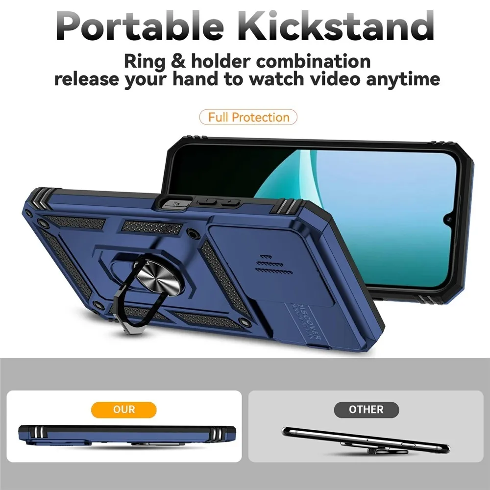 Kék hibrid tartós gyűrűs tok ujjmarkolattal Xiaomi Redmi 15C 4G/5G (173mm) számára