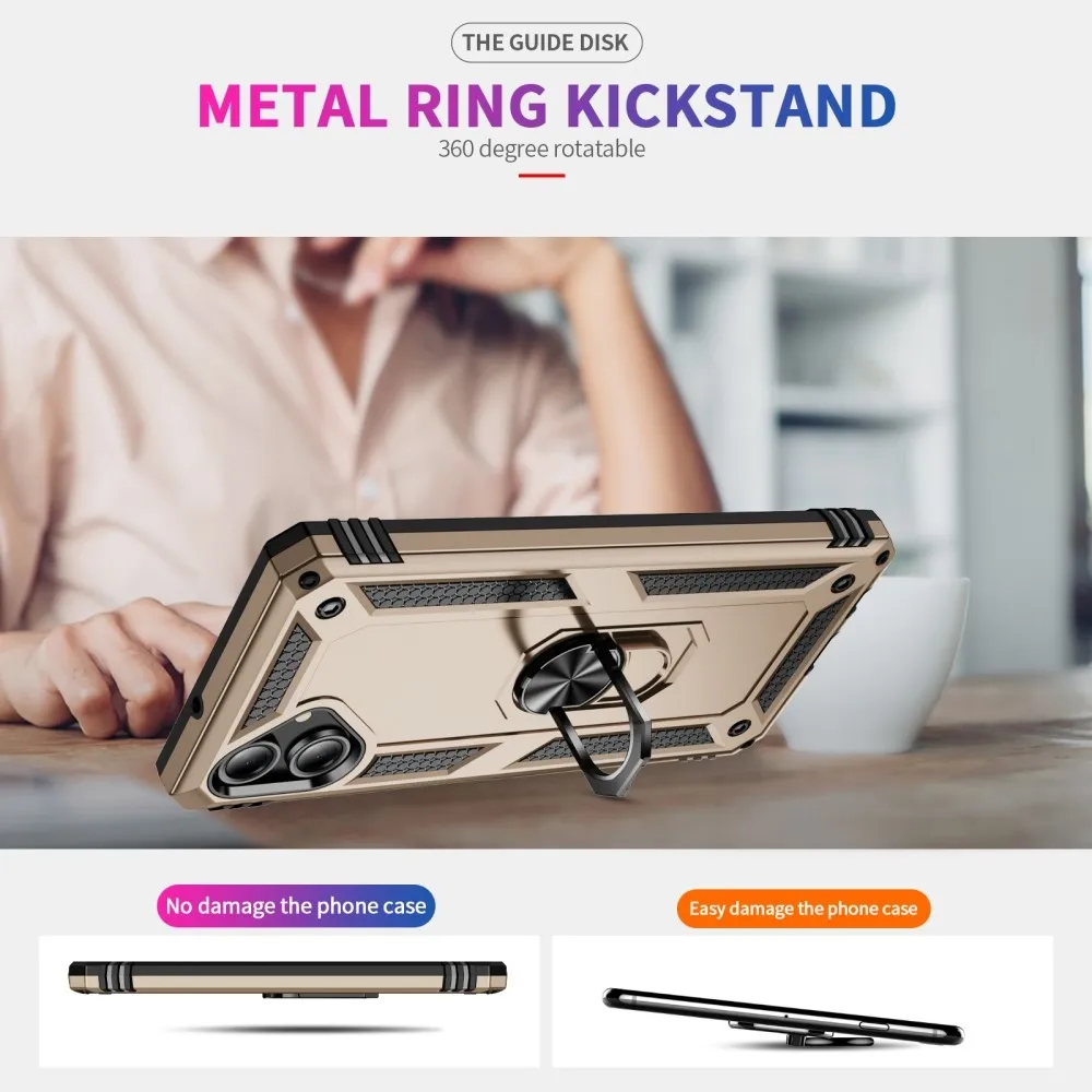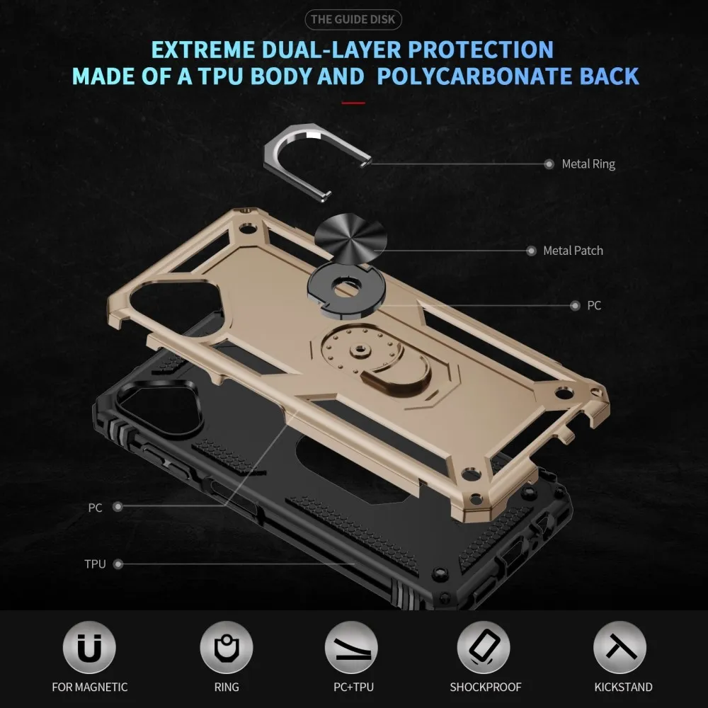 A gyűrűk tartós hibrid tokja biztonságot nyújt a telefonodnak mindenhol és hátul is, az enyhén megemelt szélek pedig tökéletes védelmet nyújtanak az érzékeny alkatrészeknek. A fém rész lehetővé teszi a mágneses tartók használatát az autóban.