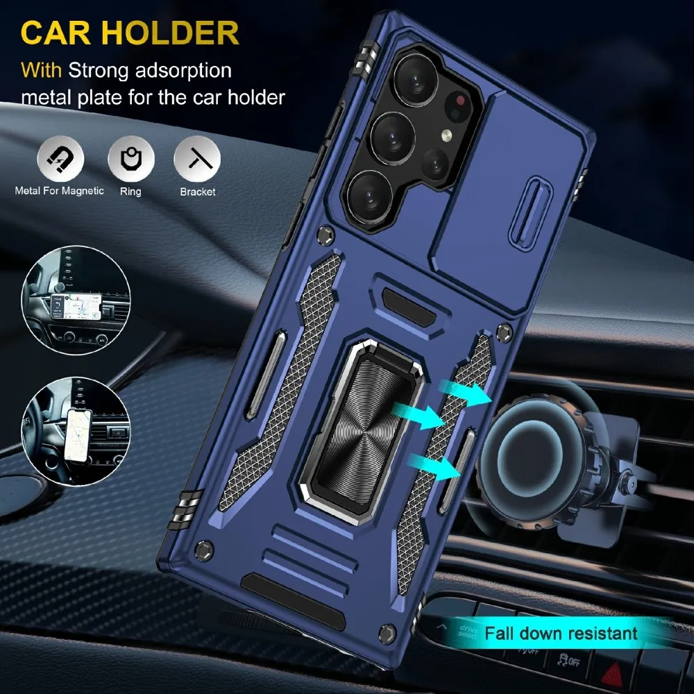 Sötétkék tartós tok Gyűrűk Samsung Galaxy S25 Ultra készülékhez