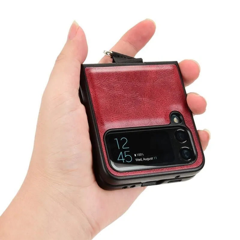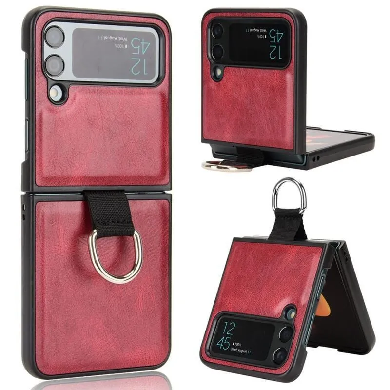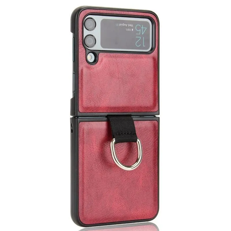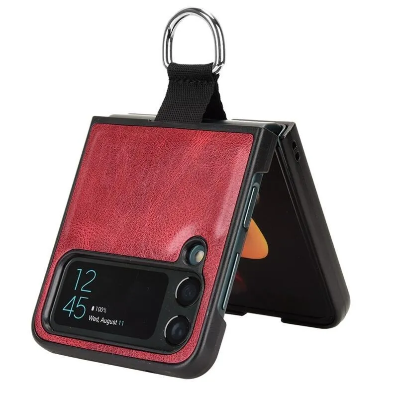 Gyűrűs műanyag borítás PU bőrrel bevont hurokkal a mobiltelefonra Samsung Galaxy Z Flip4 5G - piros