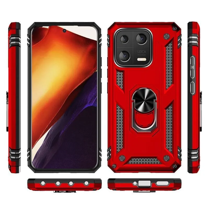 Gyűrűs tartós hibrid borítás fogantyúval a Xiaomi 13-ra - piros