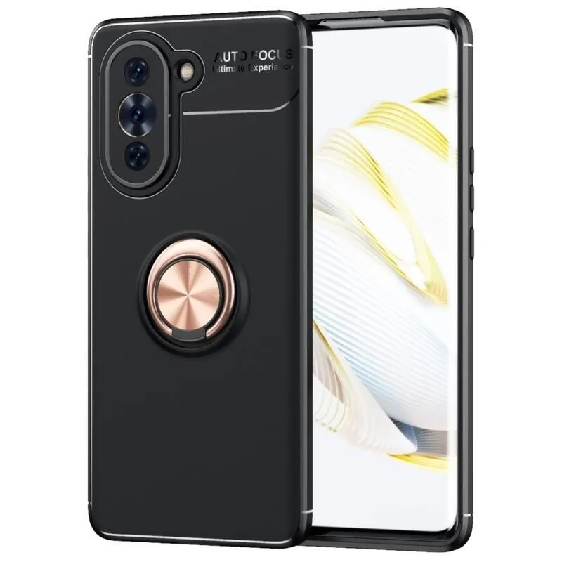 Gyűrűs tartós zselés tok ujjmarkolattal Huawei Nova 10 készülékhez - fekete/rózsaszín/arany