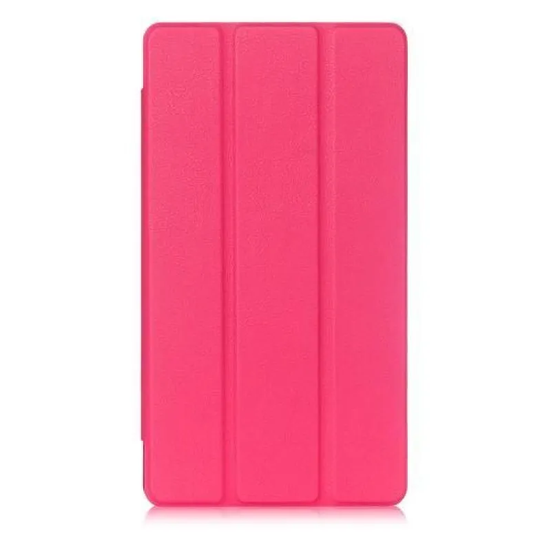 Háromrétegű, pattintható PU bőr tok Lenovo Tab 3 7 Plus-hoz - rózsaszínű