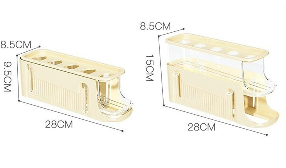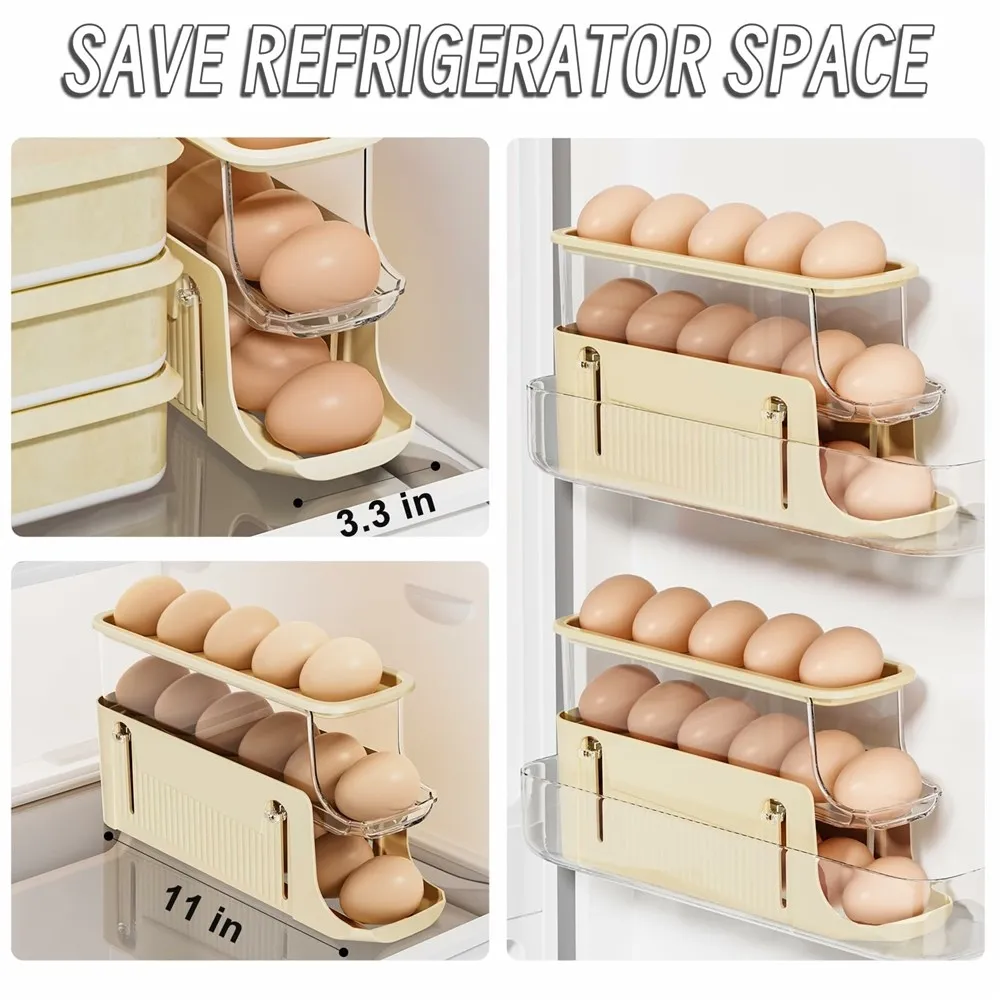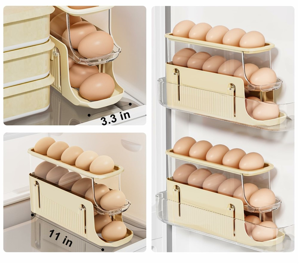A praktikus háromszintes tojástároló segít rendben tartani a hűtőt, miközben megvédi a tojásokat a sérüléstől. Az automatikus előretoló rendszernek köszönhetően a tojások kivétel után folyamatosan előre csúsznak, így mindig könnyen elérhetők. Kompakt kialakítása lehetővé teszi az elhelyezést polcon vagy a hűtő ajtajában. A bézs szín letisztult megjelenést biztosít, és könnyen illeszkedik bármilyen belső térhez.