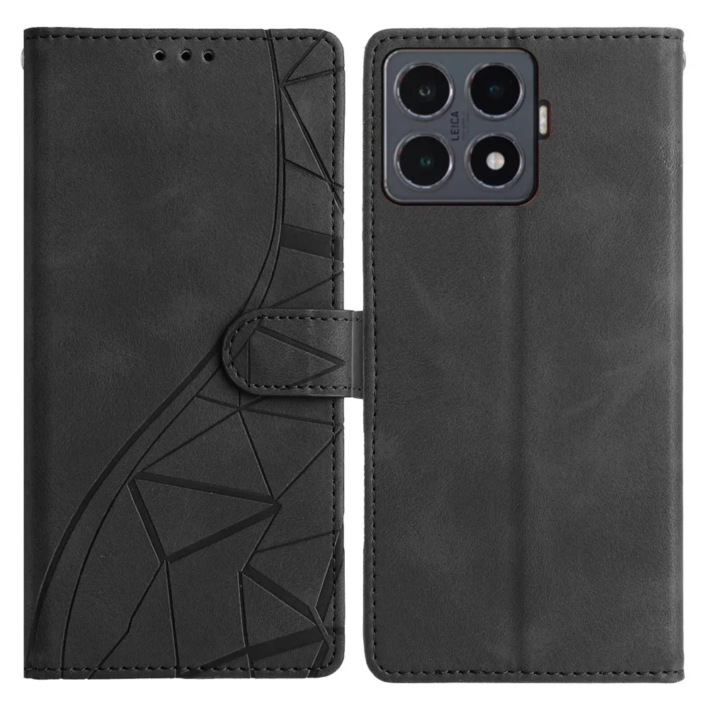 ✅【Minőségi anyagok】A Xiaomi 15T Pro-hez készült, fekete Triangles Book Case kiváló minőségű PU bőrből + TPU-ból készült, így teljes körű védelmet nyújt