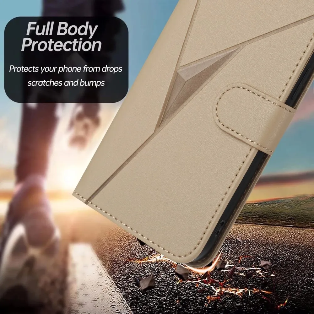 ✅【Minőségi anyagok】A Realme 14 5G háromszög alakú arany tokja kiváló minőségű PU bőrből + TPU-ból készült, így teljes körű védelmet nyújt