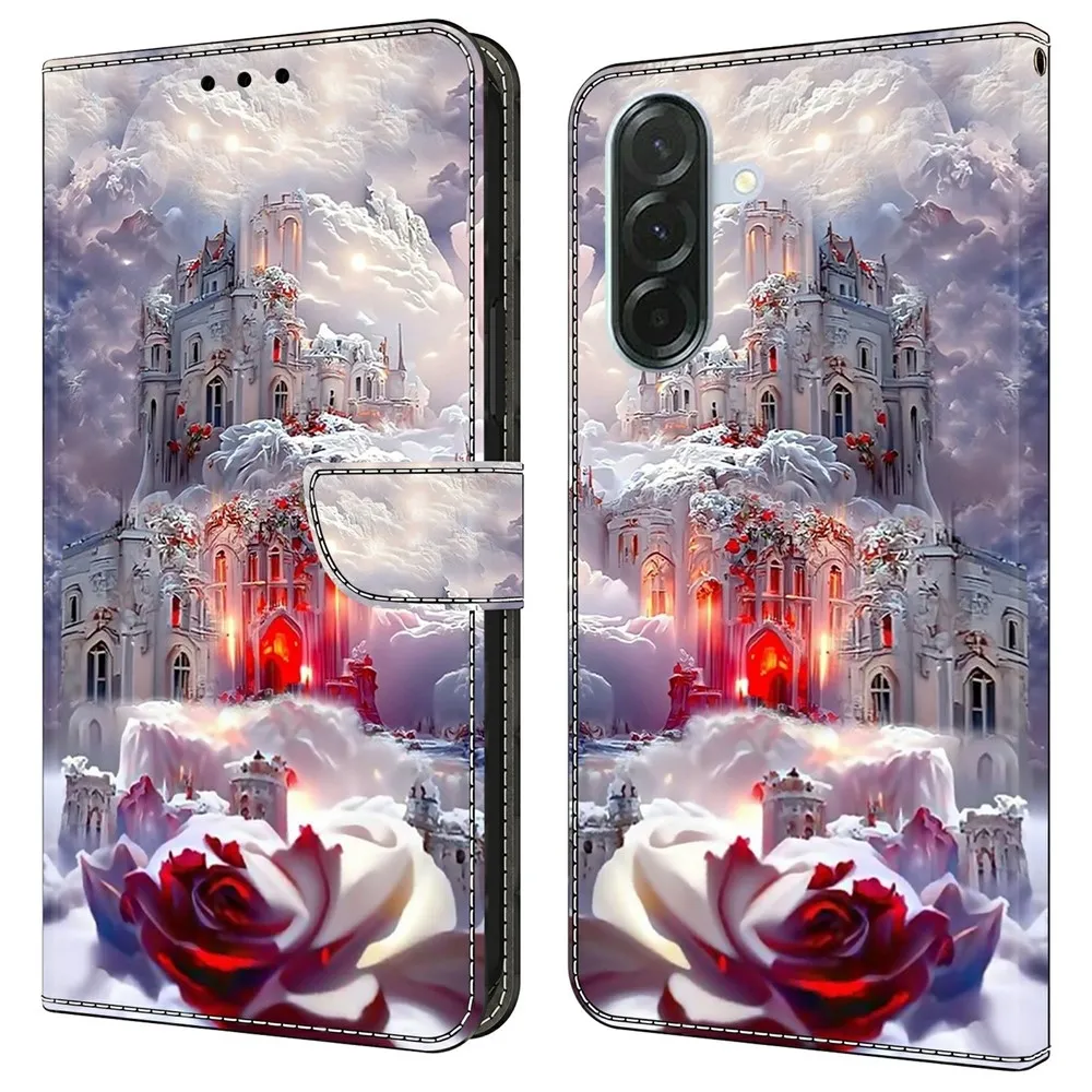 Határozottan pénztárca tok Samsung Galaxy A37 5G mobiltelefon és rózsa motívum és zár