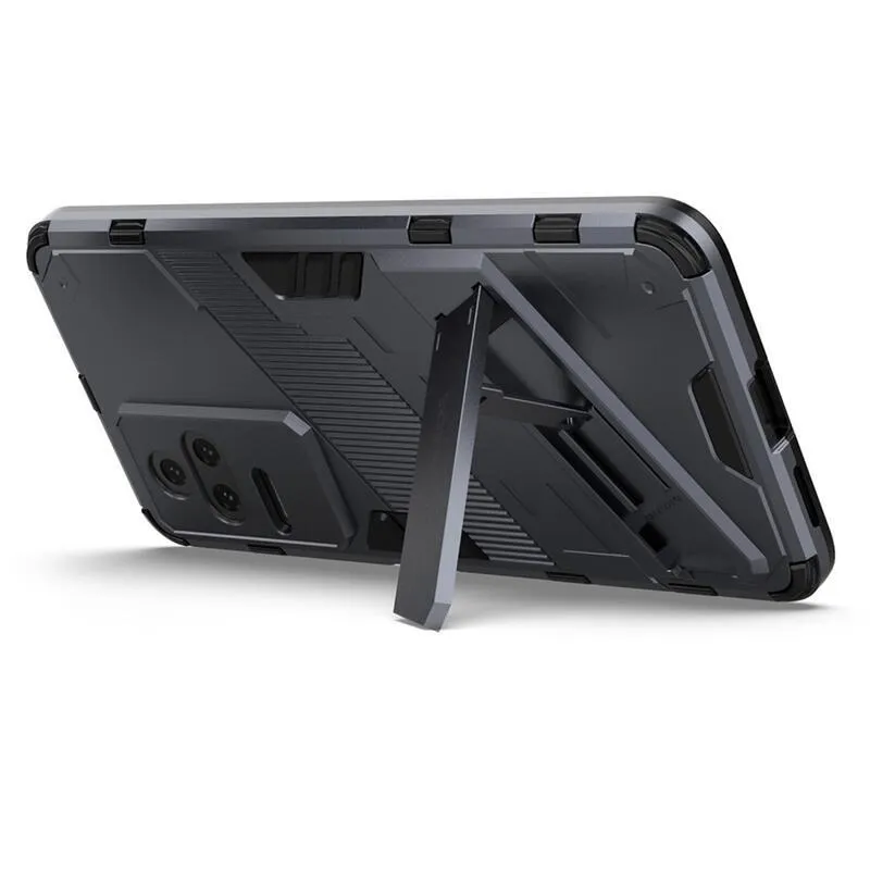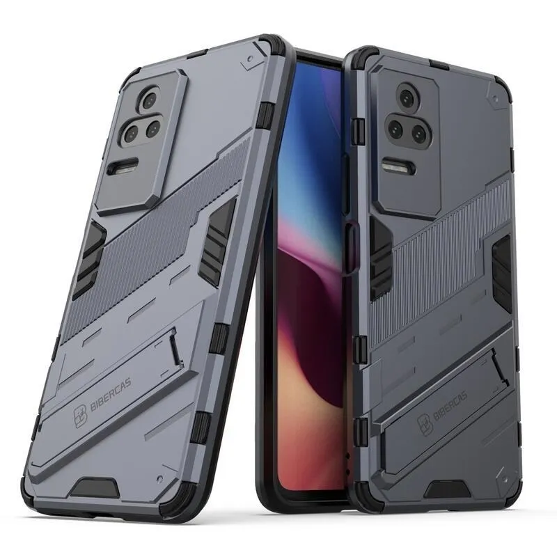 Héjálló hibrid borítás csuklós állvánnyal a Xiaomi Poco F4 5G-hez - sötétkék