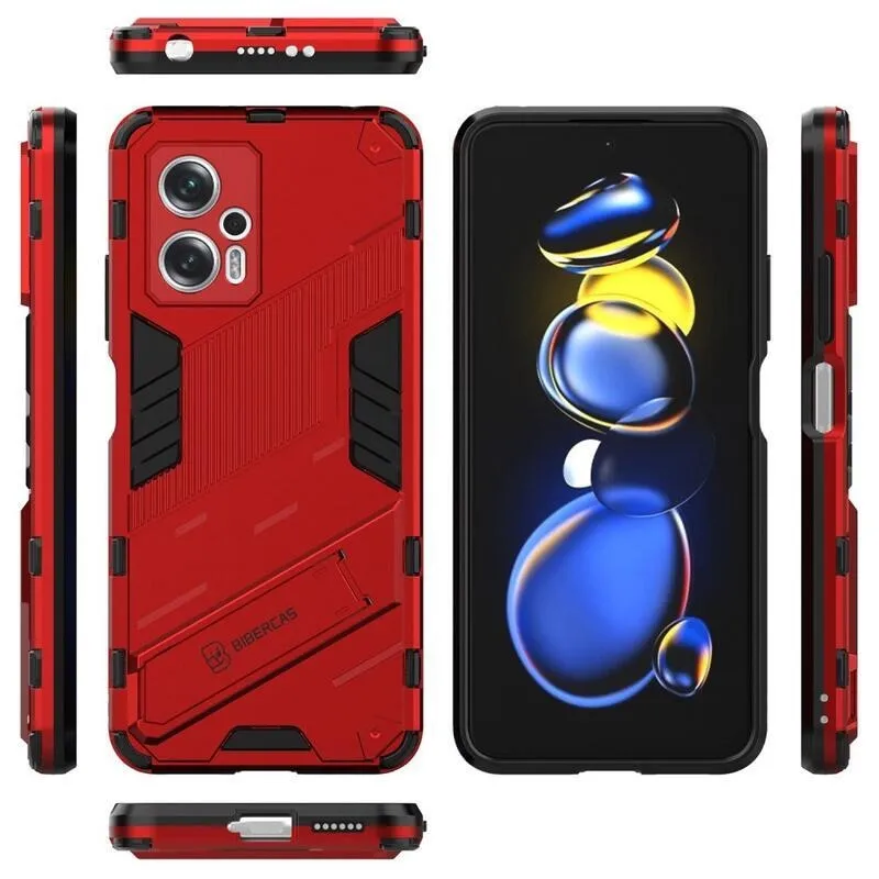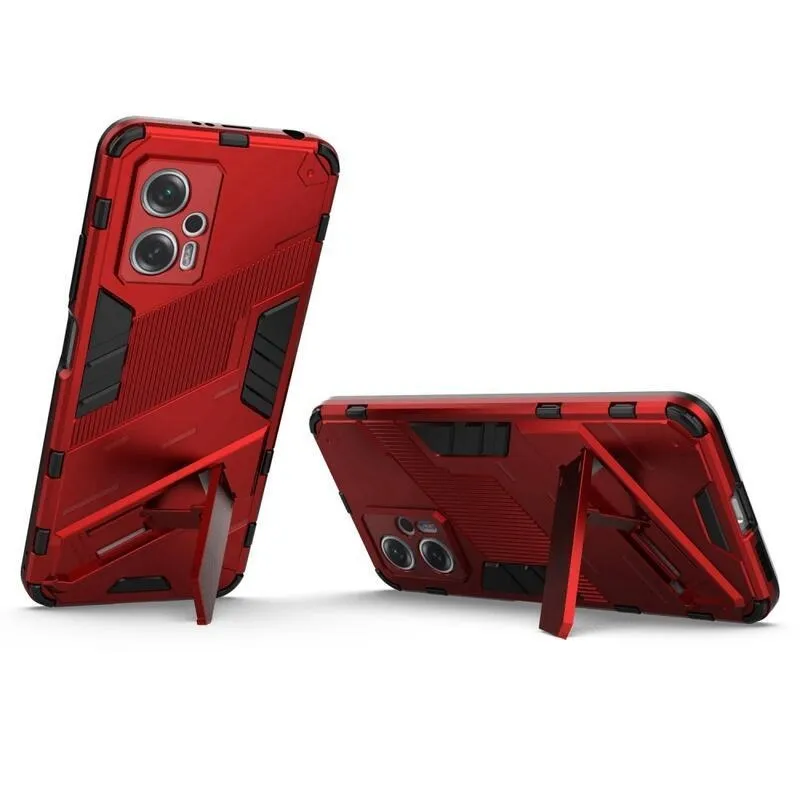 Héjálló hibrid borítás csuklós állvánnyal a Xiaomi Poco X4 GT 5G-hez - piros
