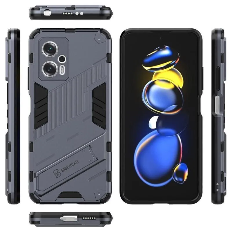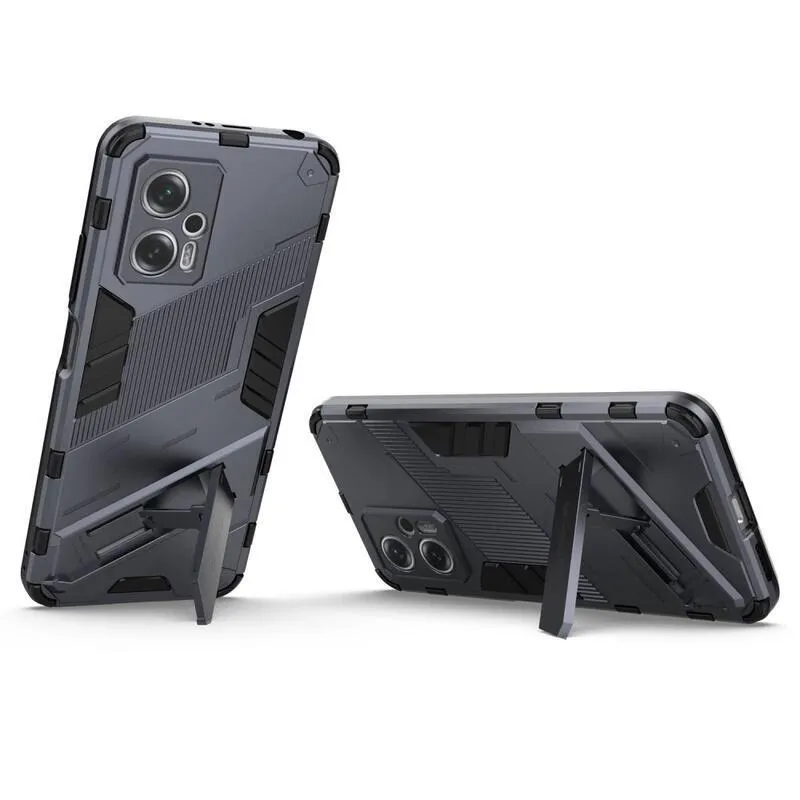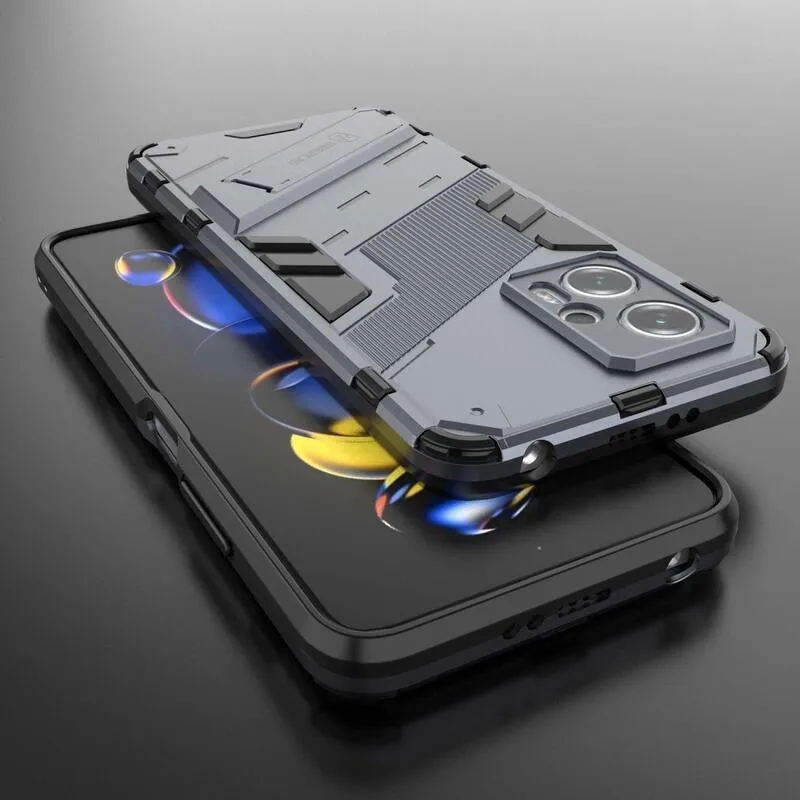 Héjálló hibrid borítás csuklós állvánnyal a Xiaomi Poco X4 GT 5G-hez - sötétkék