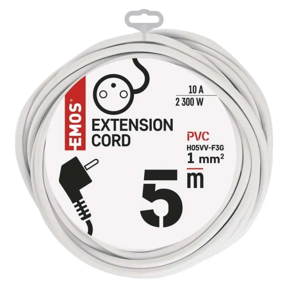 Hosszabbító kábel 5 m / 1 csatlakozó / fehér / PVC / 1 mm2