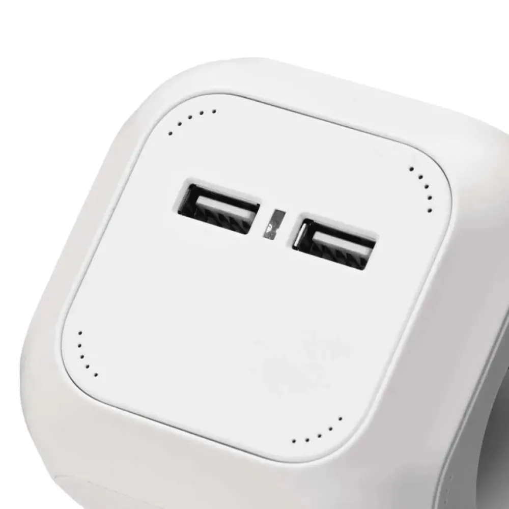 Hosszabbító kábel - kocka 1,9 m / 4 aljzat / fehér / PVC / USB-vel / 1,5 mm2
