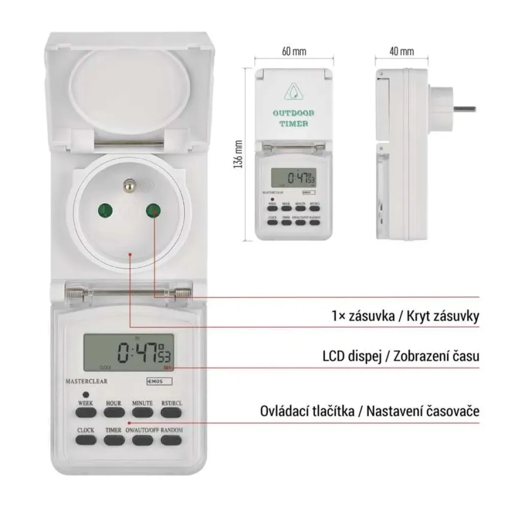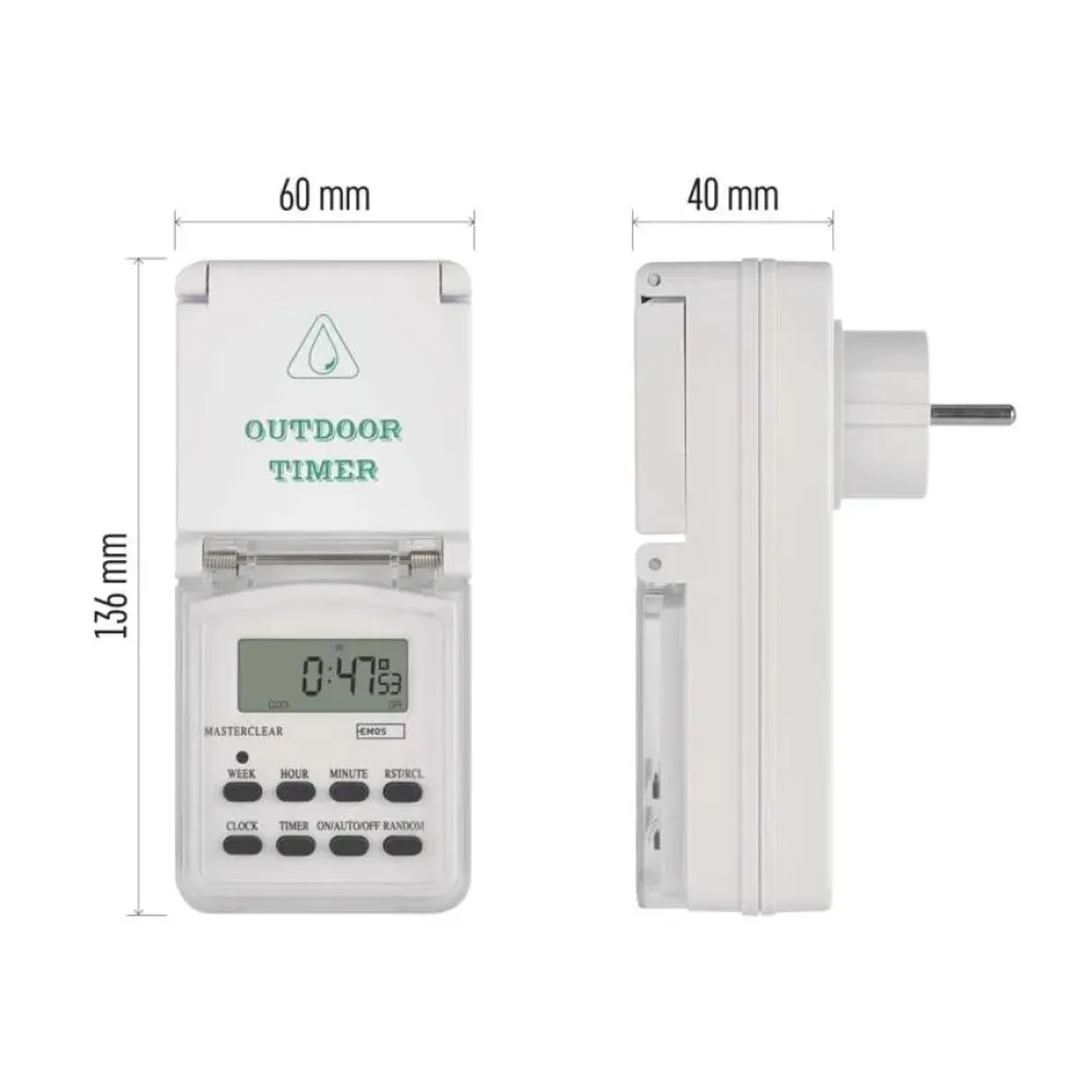 Időzítő - digitális kapcsoló aljzat kültéri IP44 P5507N
