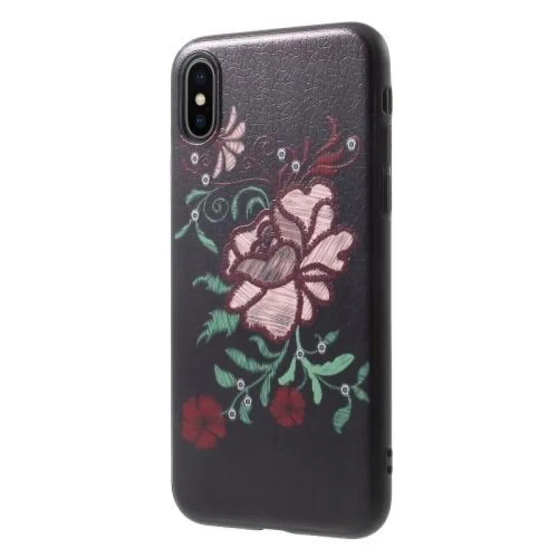 Ider gél tok PU bőrrel borított iPhone X készülékhez - rózsaszín csokor