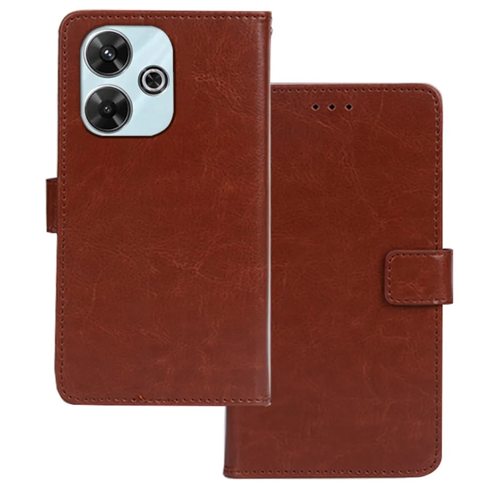 Barna pénztárca tok IDEWEI a Xiaomi Redmi 13 4G/Poco M6 4G számára