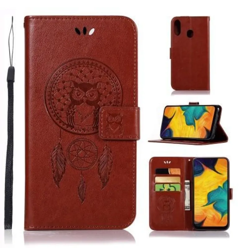 Impresszum PU bőr pénztárca tok Samsung Galaxy A30 / A20-hoz - barna