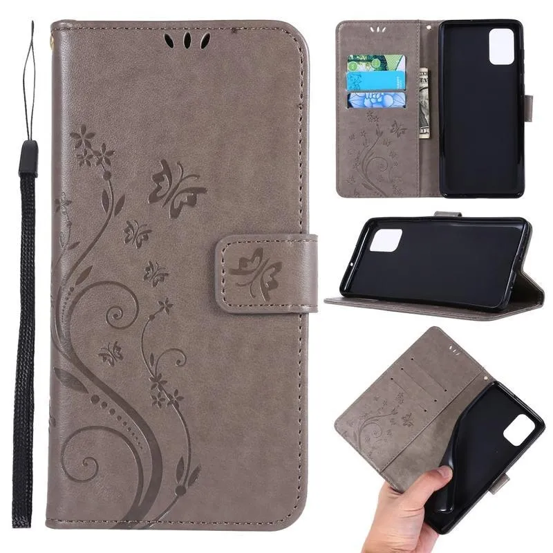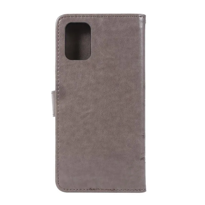 Impresszum PU bőr pénztárca tok Samsung Galaxy A71-hez - szürke