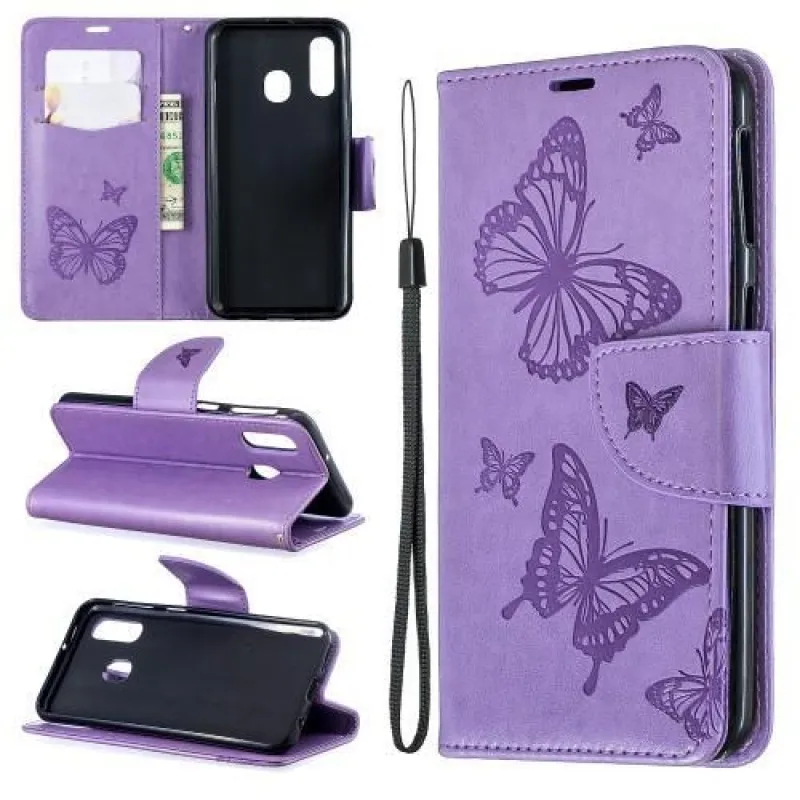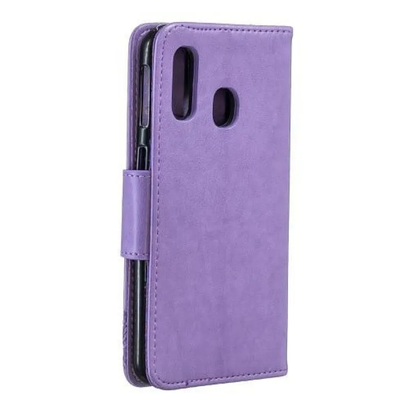 Impresszum PU bőr tok Samsung Galaxy A40 készülékhez - lila