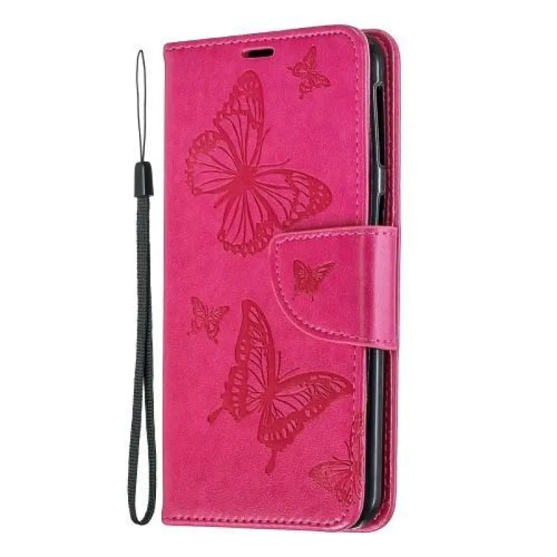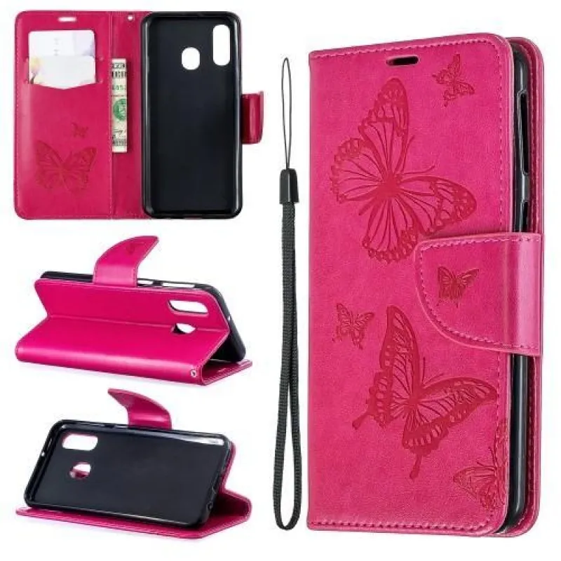 Impresszum PU bőr tok Samsung Galaxy A40 készülékhez - rózsaszínű