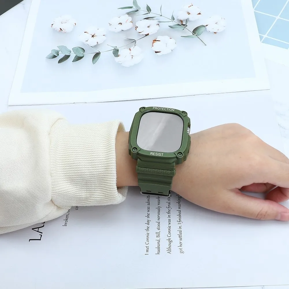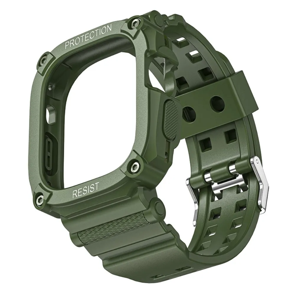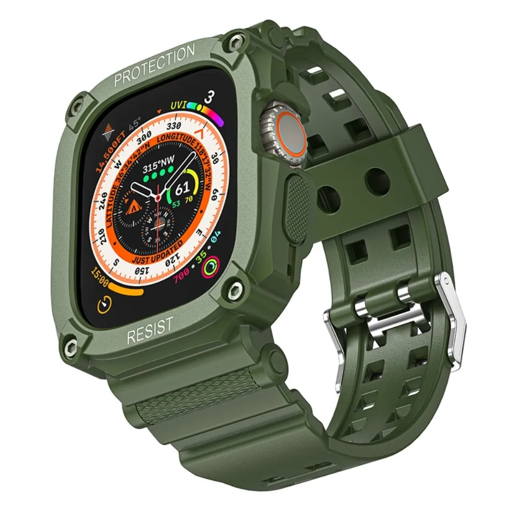 Integrált szilikon védő tok szíjjal az Apple Watch Ultra 49 mm-es órához - zöld