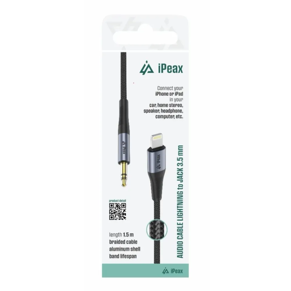 iPEAX adapter villám / 3,5 mm-es jack 1,5 m - fekete