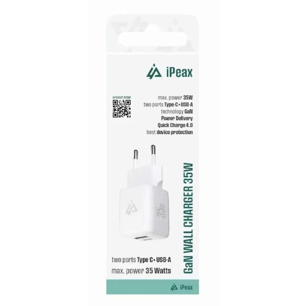 iPEAX GaN hálózati töltő 35 W, 1x USB-C és 1x USB-A - fehér