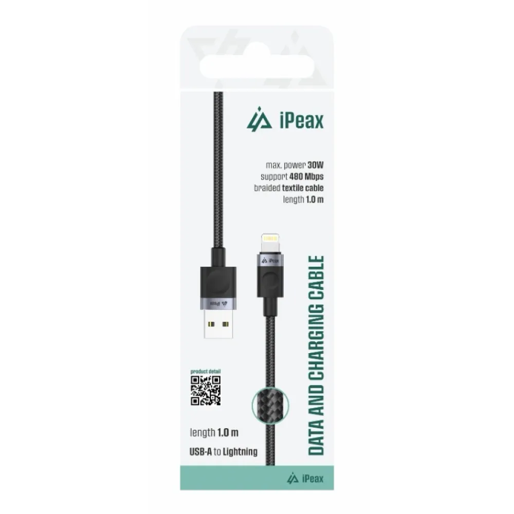 iPEAX Textil kábel USB-A / villám 1 m, USB 2.0 - fekete