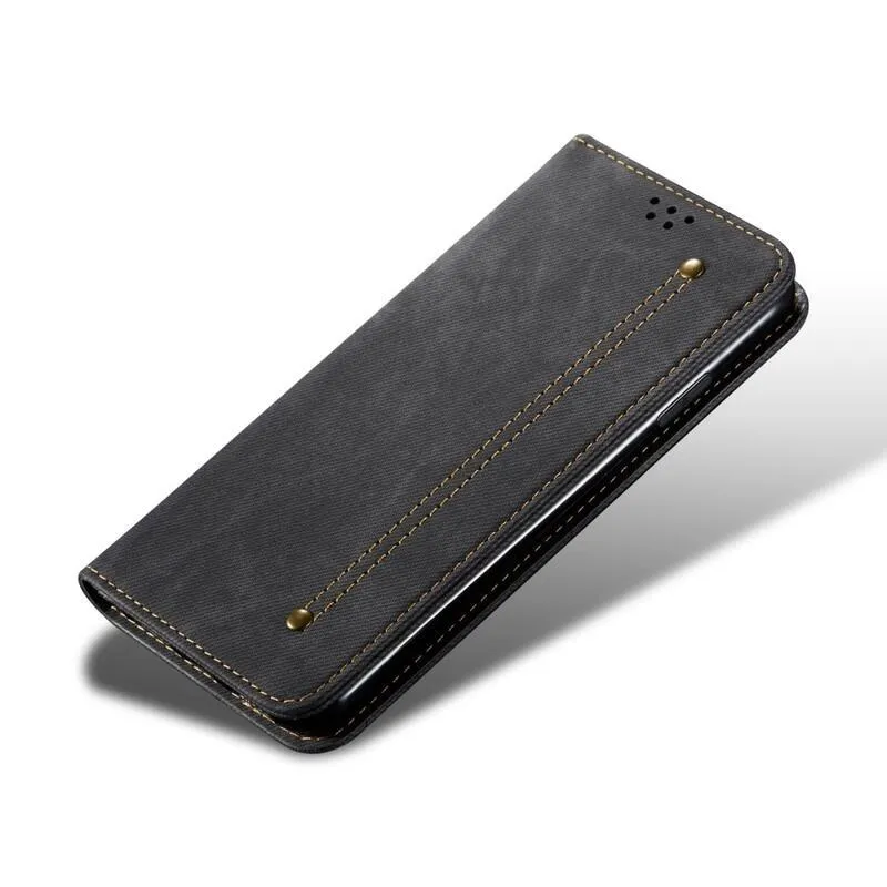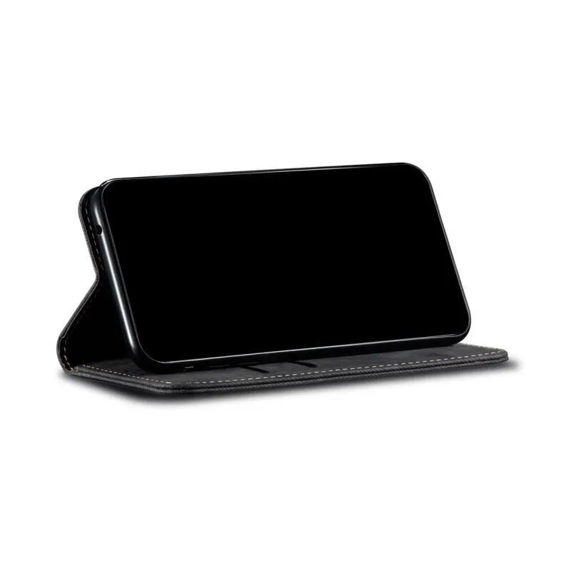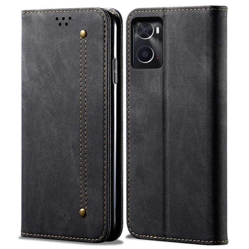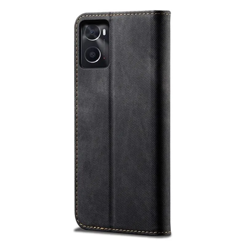 Jeans PU bőr pénztárca tok mobiltelefonhoz Realme 9i - fekete