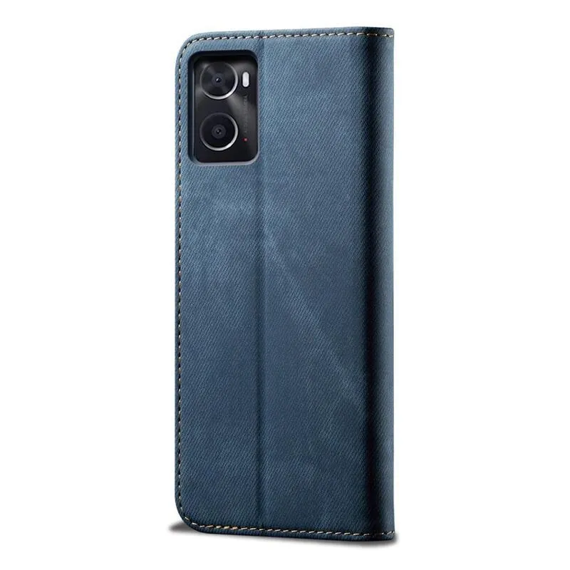 Jeans PU bőr pénztárca tok mobiltelefonhoz Realme 9i - kék