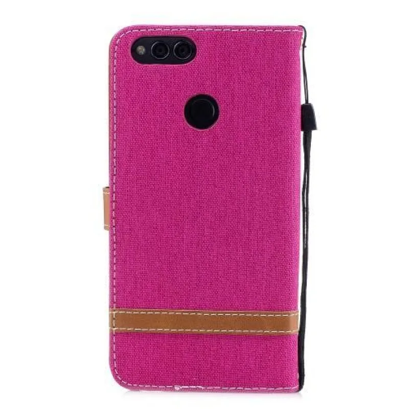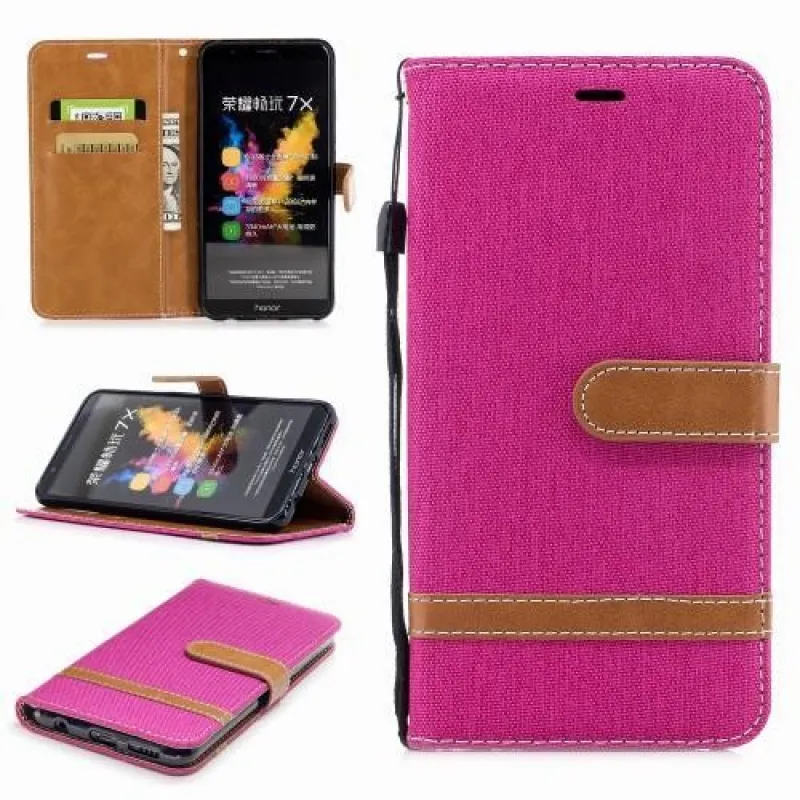 Jeans PU bőr / textil tok a Honor 7X-hez - rózsaszínű