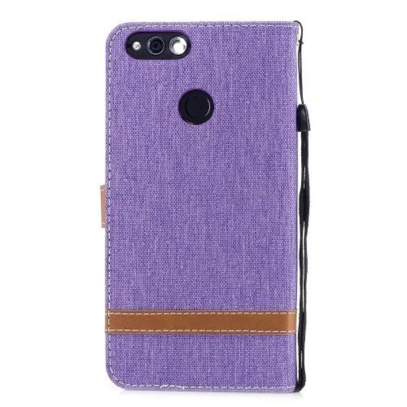 Jeans PU bőr / textil tok a Honor 7X-hez - szürke