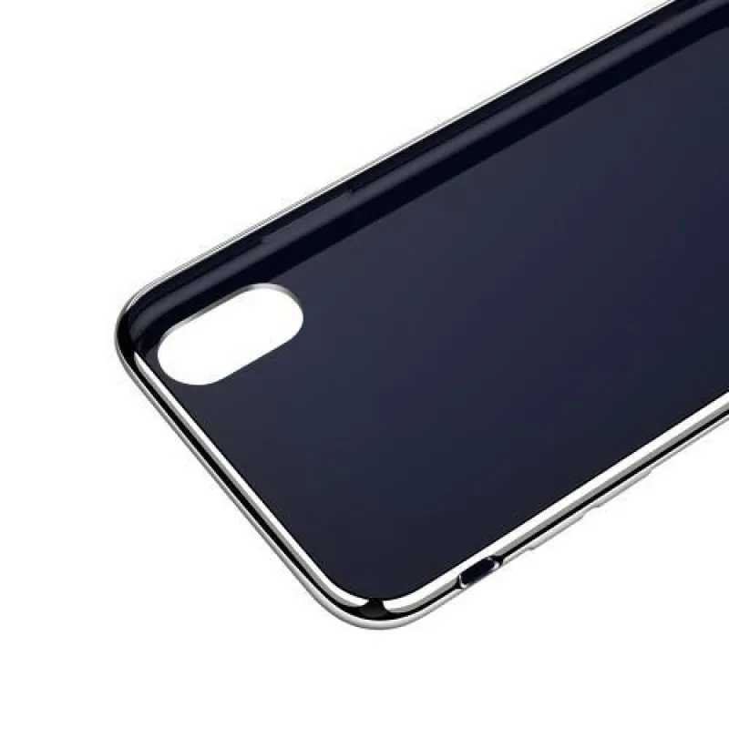 Elegáns fehér szilikon borítás finom ezüst csíkokkal iPhone X készülékhez