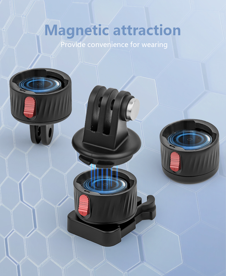 A mágneses tartó akciókamera rögzítésére szolgál állványon vagy más kompatibilis kiegészítőn. Lehetővé teszi a kamera gyors pozícióváltását, és megkönnyíti a használatot kültéren, sportolás közben vagy mindennapi felvételeknél bonyolult kezelési lépések nélkül.