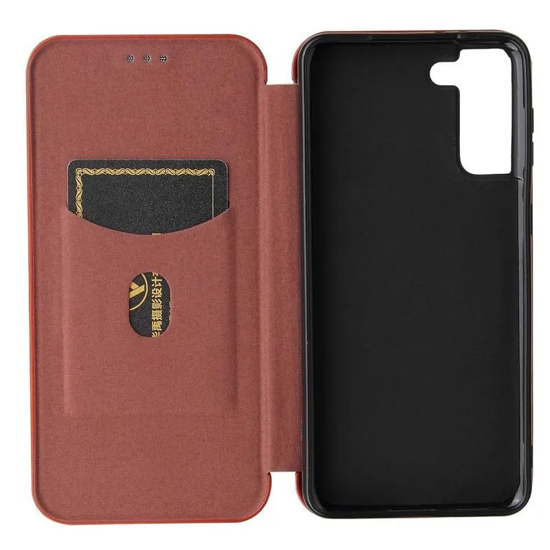 Karbon PU bőr pénztárca tok Samsung Galaxy S21-hez - barna