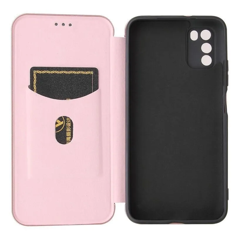 Karbon PU bőr pénztárca tok Xiaomi Poco M3-hoz - rózsaarany