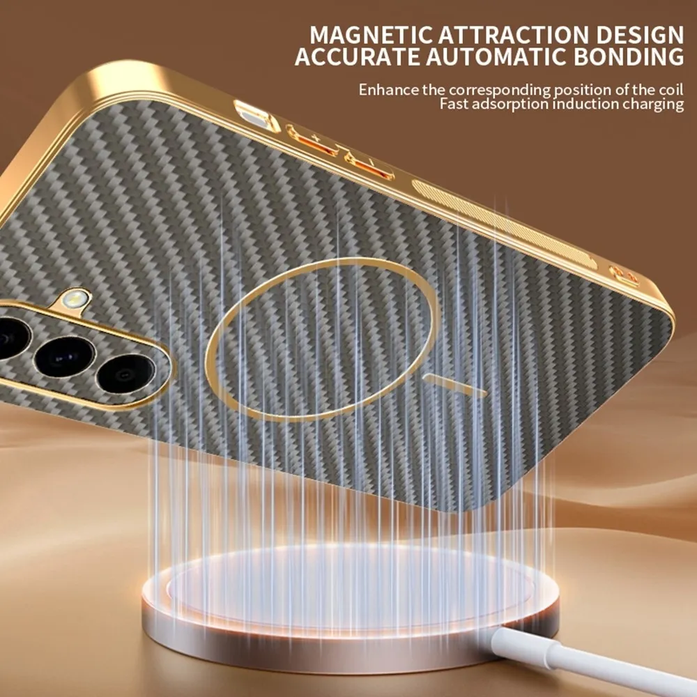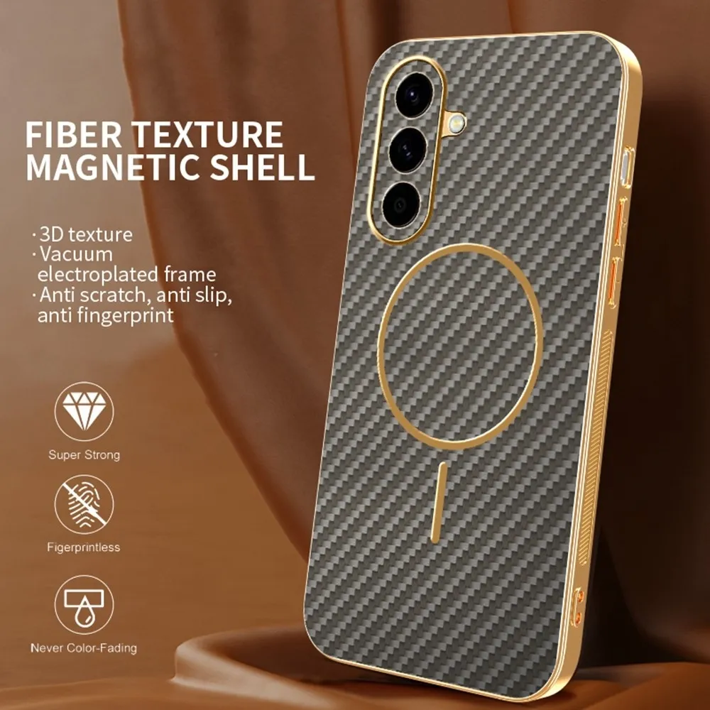 A texturált szénszálas felület prémium, tech-modern megjelenést kölcsönöz ennek a toknak, amely kiegészíti a Samsung Galaxy A57 5G telefonod dizájnját. A barna részletek, beleértve a mágneses gyűrűt is, elegáns kontrasztot alkotnak, és pontosan úgy lettek kialakítva, hogy kompatibilisek legyenek a modell mágneses kiegészítőivel. A strapabíró, mégis vékony tok követi a készülék formáját, védi a hátlapot és a széleket is, miközben kényelmes fogást biztosít. Ez a tok egyike azon tokoknak, amelyek a jellegzetes stílust ötvözik a telefonra szabott védelemmel. ✅【TPU anyag】A rugalmas és tartós TPU konstrukció kiváló ütéscsillapítást és tökéletes illeszkedést biztosít a telefonhoz. ✅【Prémium galvanizált felület】A kiváló minőségű galvanizálás fokozza a tartósságot és az esztétikus megjelenést. ✅【Ujjlenyomat-állóság】A speciális szénszálas textúrájú bevonat taszítja az ujjlenyomatokat, így a telefontok tiszta és elegáns marad. ✅【Fokozott kamera- és képernyővédelem】A tartós anyag, kiemelt szélekkel véd a karcolásoktól és megőrzi a tok tökéletes megjelenését. ✅【Precíz kivágások és csúszásgátló felület】A precízen kialakított nyílások könnyű hozzáférést biztosítanak az összes porthoz és gombhoz; A texturált oldalak biztonságos fogást biztosítanak és csökkentik a véletlen leejtés kockázatát. ✅【Mágneses töltővel kompatibilis】A beépített, nem mágneses lemez gondtalan használatot biztosít a mágneses tartókkal.