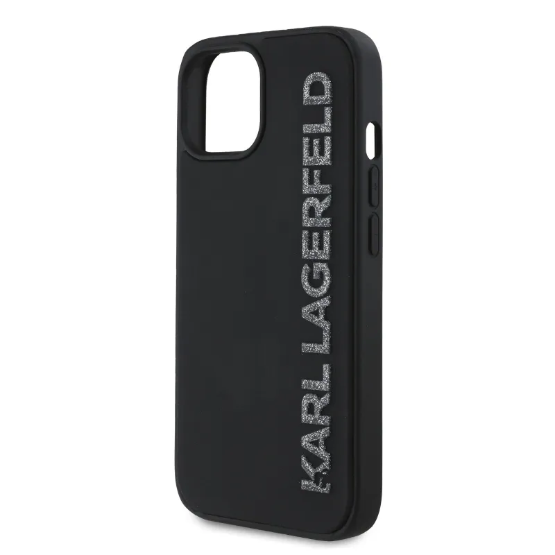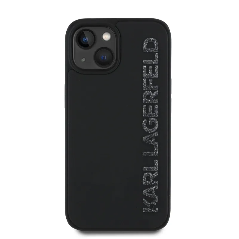 Karl Lagerfeld 3D gumiból készült csillogó logós hátlap iPhone 13-hoz Fekete