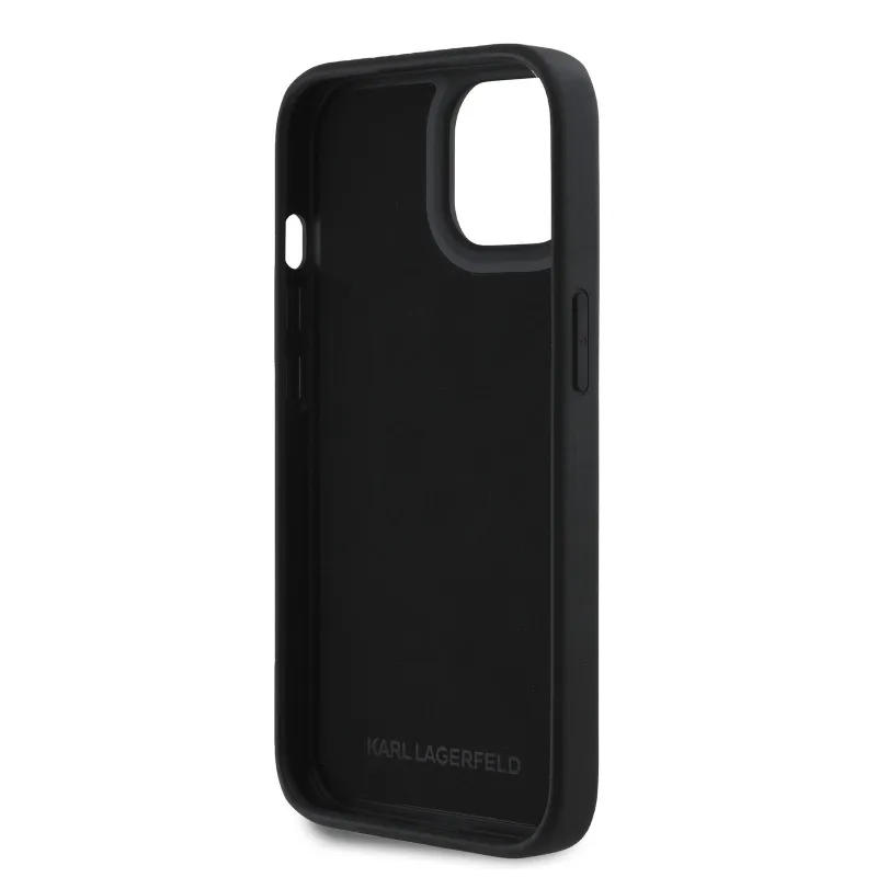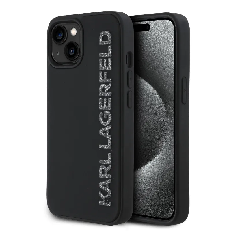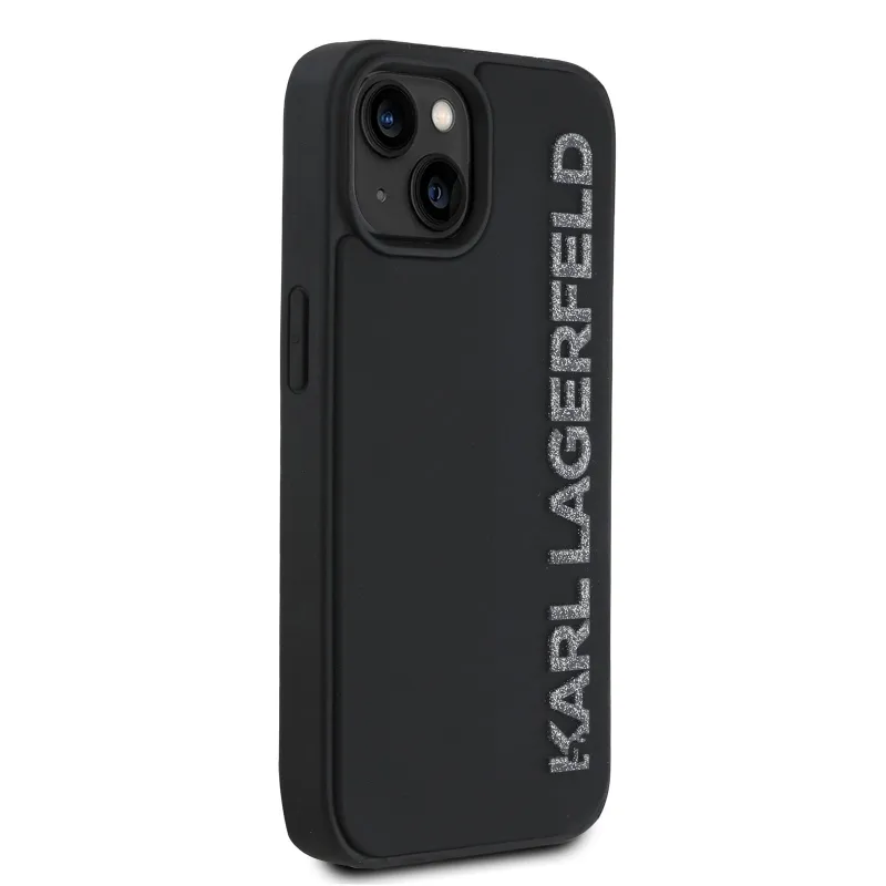 Karl Lagerfeld 3D gumiból készült, csillogó logós hátlap iPhone 15-hez Fekete